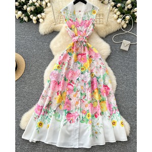 ノースリーブと縦ラインのシルエットが軽やかさを演出し、自然と女性らしい美しさを引き立てます。