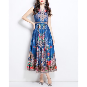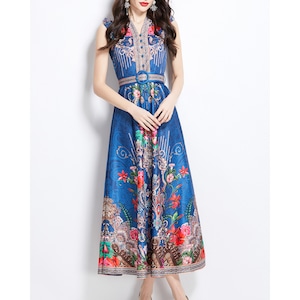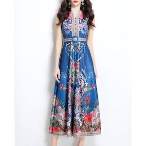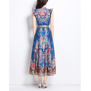 気品あるオリエンタル調デザインに華やかなフラワーモチーフを重ねた、存在感あふれるワンピースです。