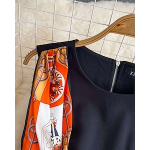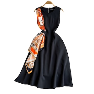 洗練されたシルエットにスカーフディテールが映える、印象的なワンピースです。