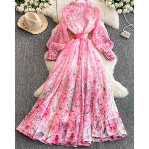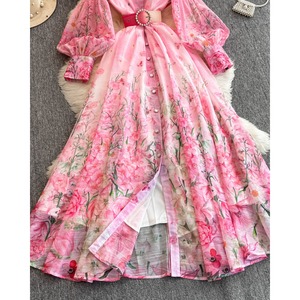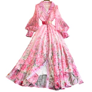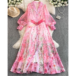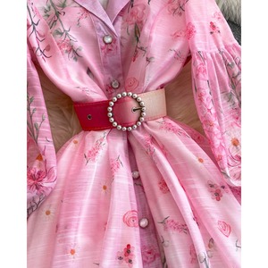 フロントボタンとウエストマークが縦のラインを美しく整え、優雅なシルエットを描きます。