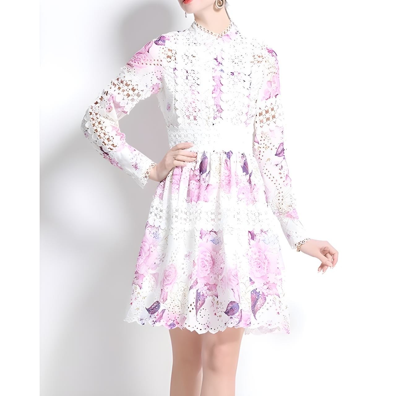 繊細なレースに淡いフラワーモチーフを重ねた、可憐さと上品さを併せ持つワンピースです。