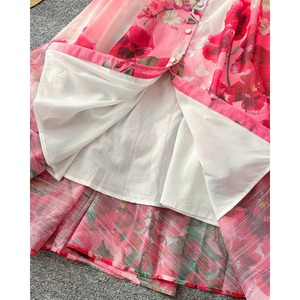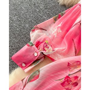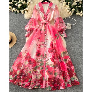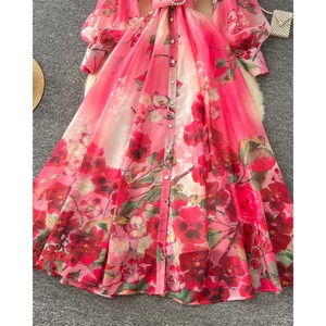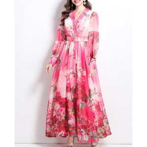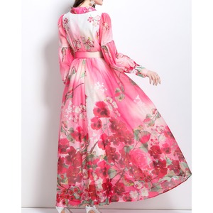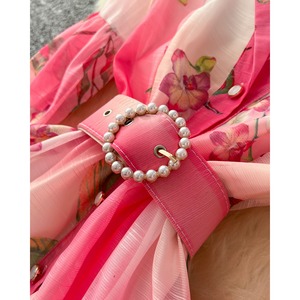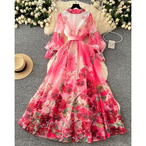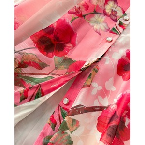 華やかに広がるフラワーモチーフが印象的な、視線を惹きつけるエレガントなワンピース。