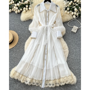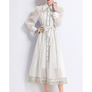 繊細なレースディテールと透け感のあるデザインが、清楚で上品な華やかさを演出するワンピースです。