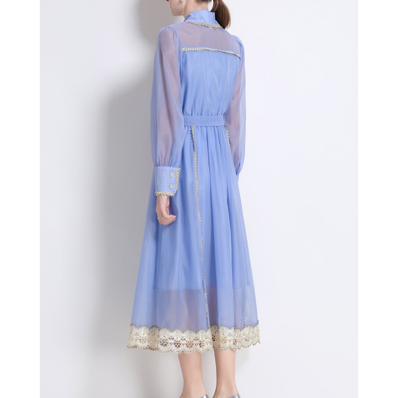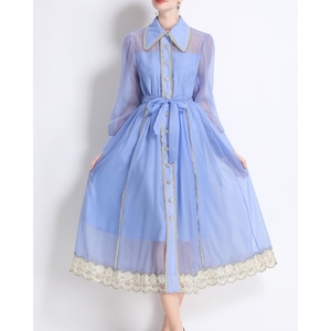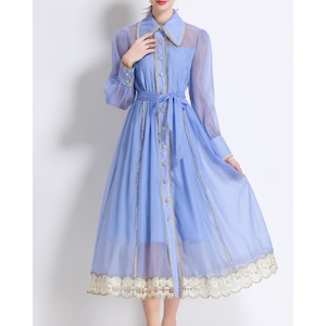 優しいブルーに繊細なレースをあしらった、気品漂うシアーワンピース。