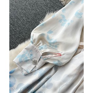 淡く溶け合うフラワーモチーフが、透明感と上品な華やかさを演出するワンピースです。