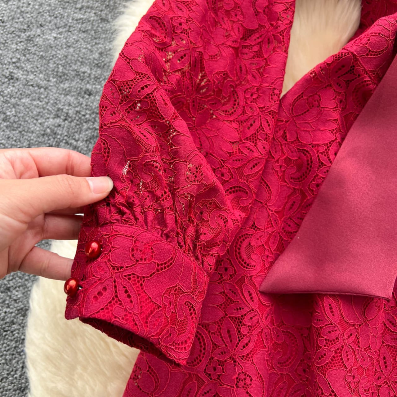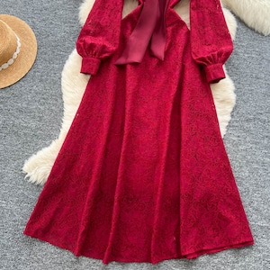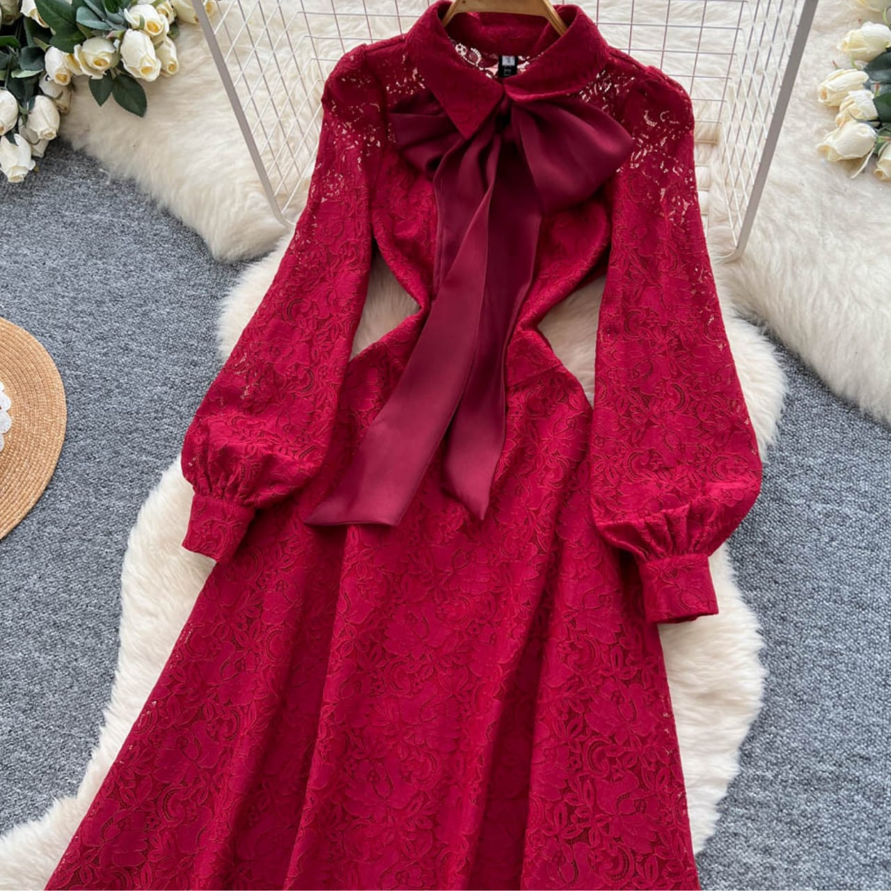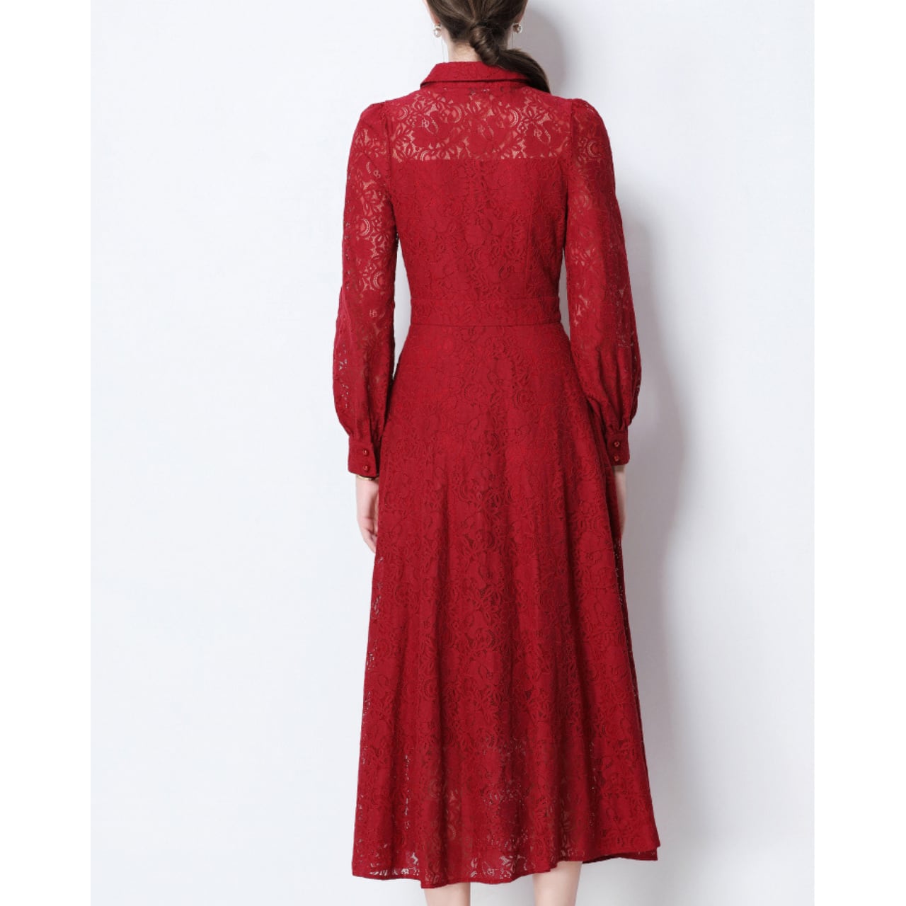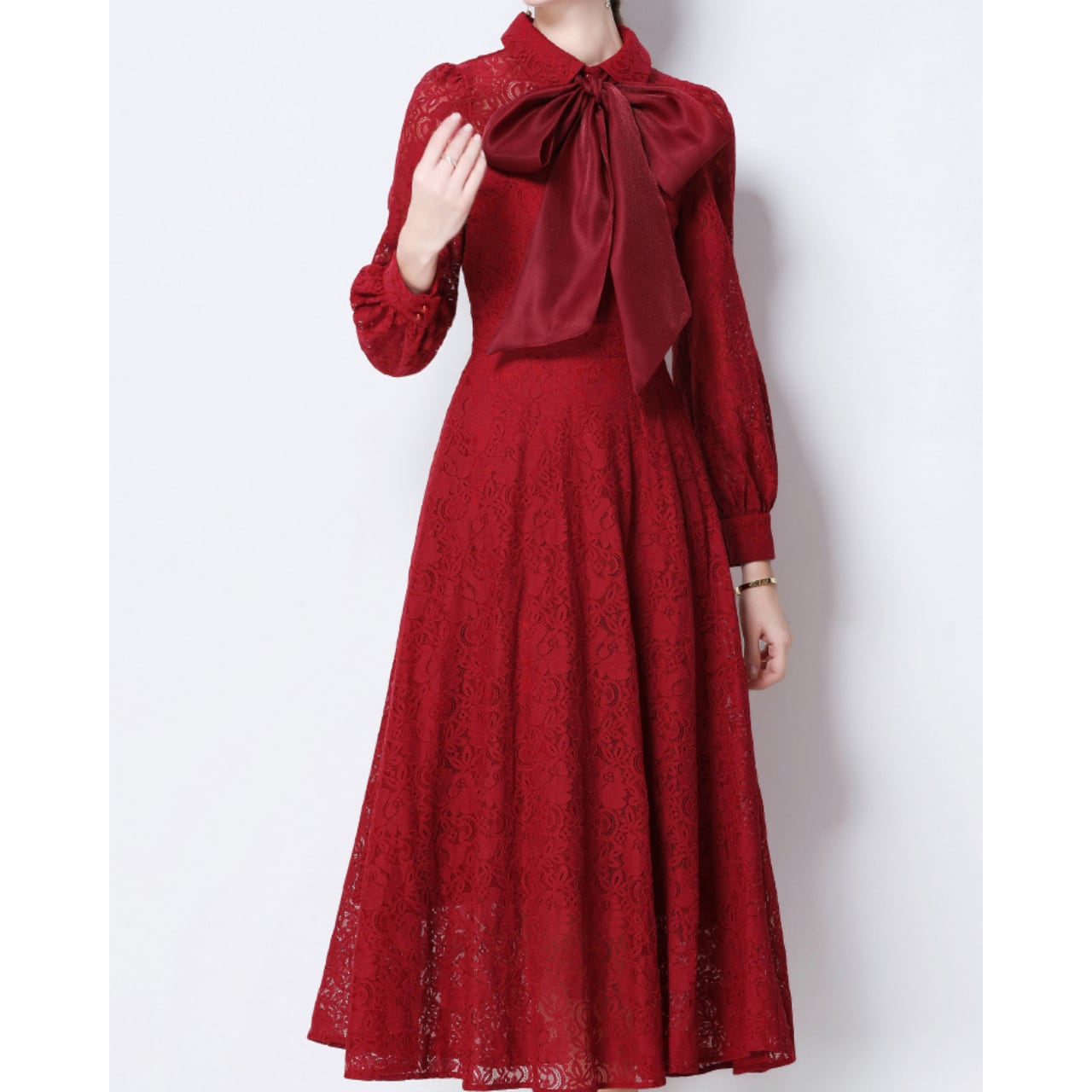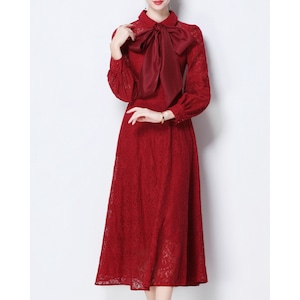 首元のデザインとウエストのラインが全体を美しく整え、女性らしさを引き立てます。
