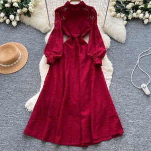 優雅に揺れるシルエットと繊細な表情が印象的な、存在感のあるワンピースです。