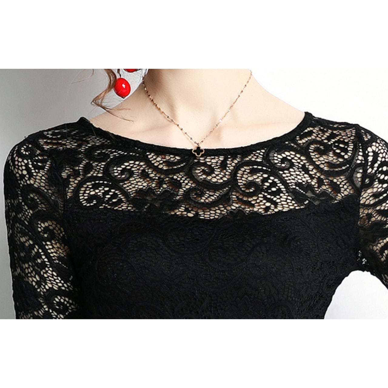 繊細な総レースが女性らしさを引き立てるクラシカルなデザインです。