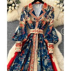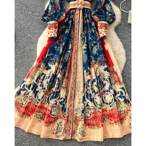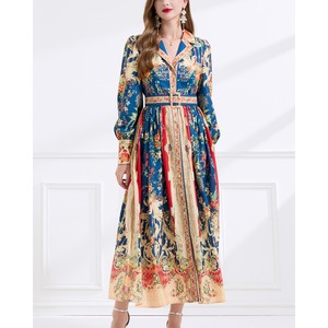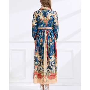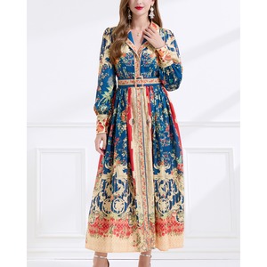 芸術的なバロック調プリントが目を惹く、華やかで上品なロングワンピースです。