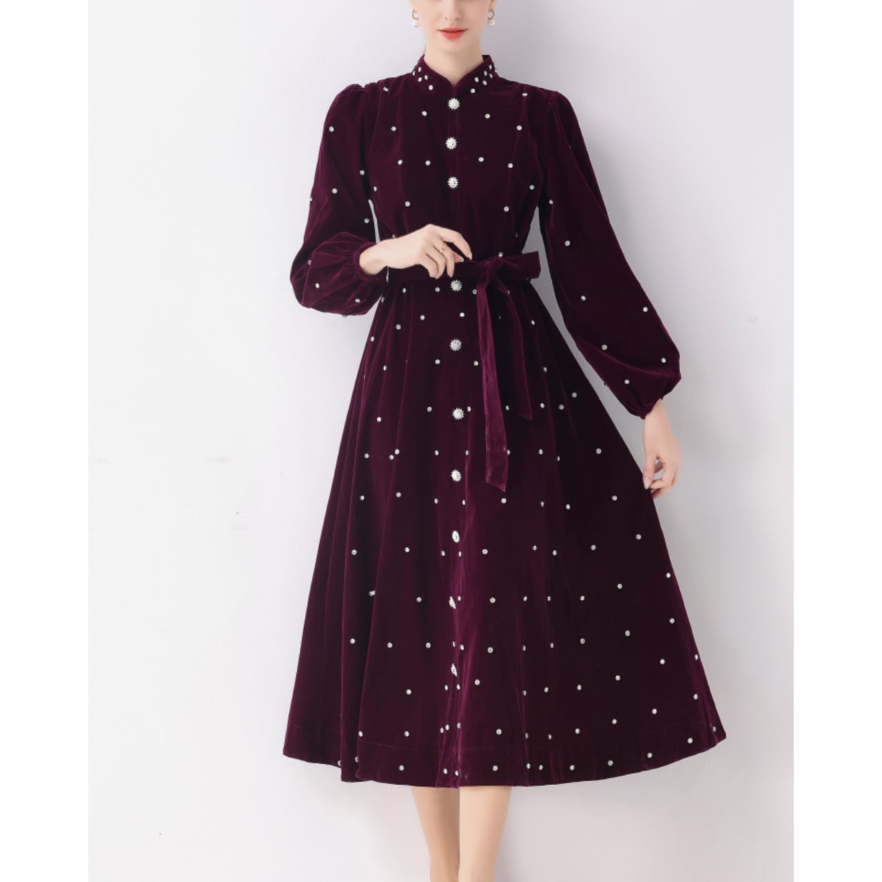パールドットスタンドワンピース L2000