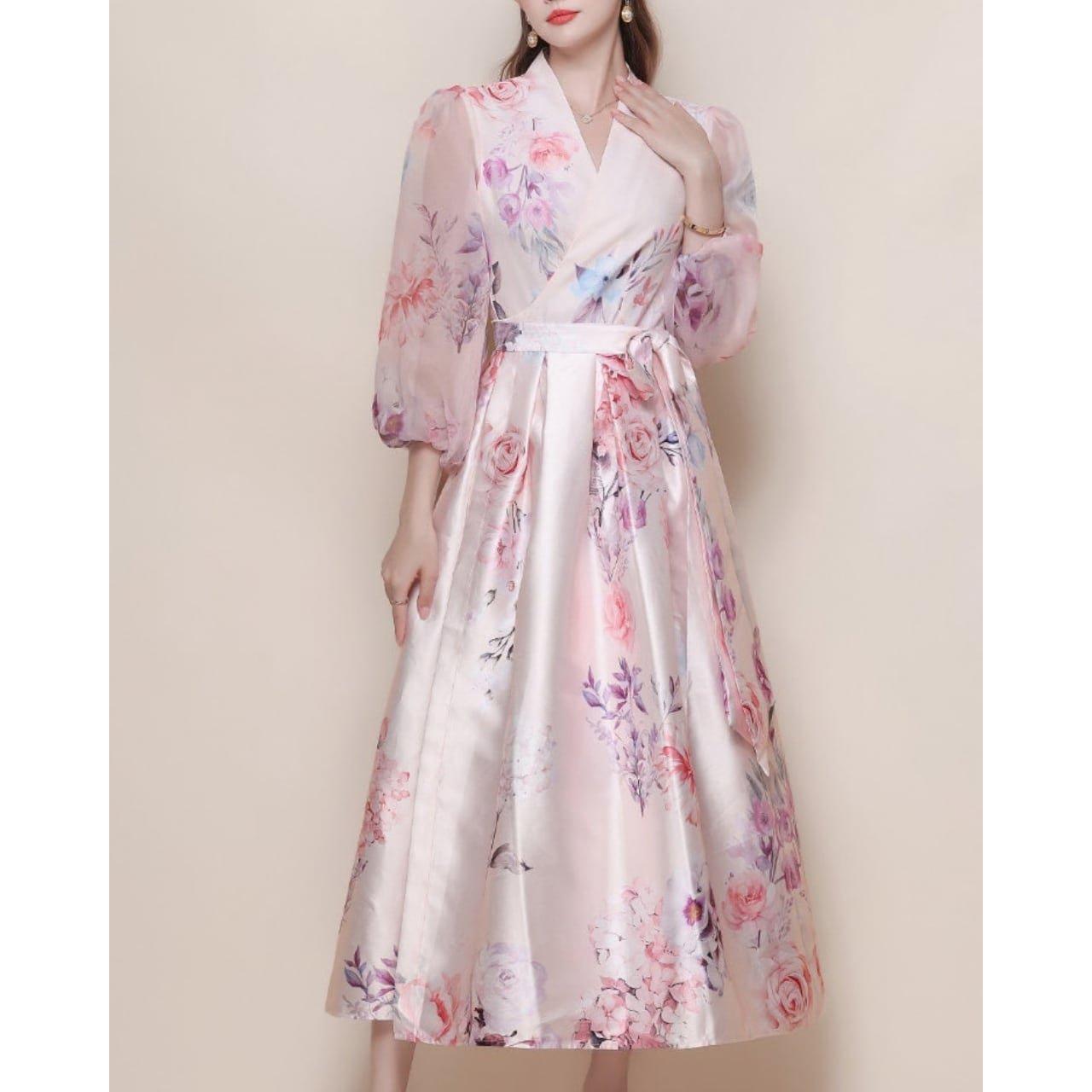 一枚で装いが完成し、特別な日をロマンティックに彩ってくれる主役級の一着です。