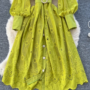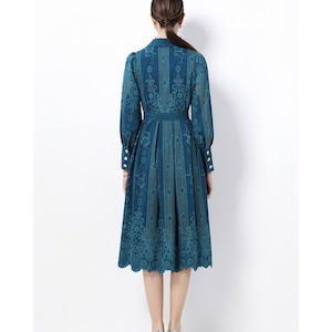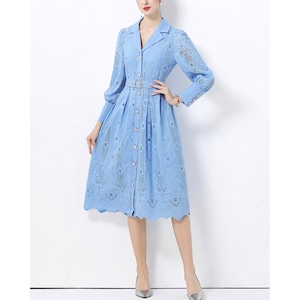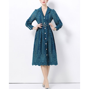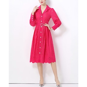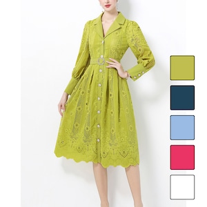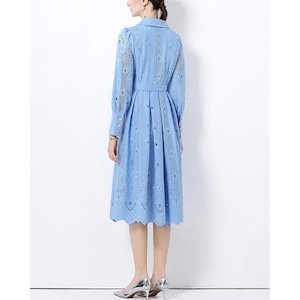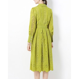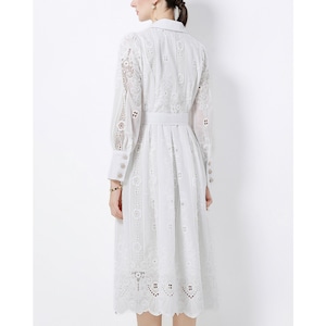 立体感のあるレースデザインが華やかさを引き立て、凛とした印象を与えるワンピースです。