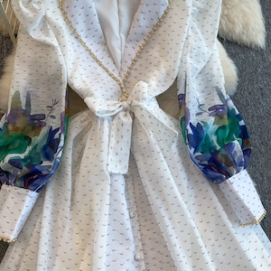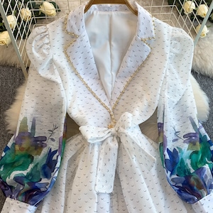 テーラードデザインにアートのような表情を重ねた、洗練された雰囲気のワンピースです。