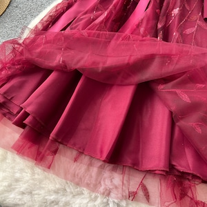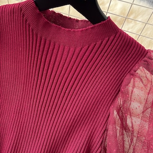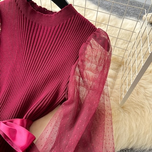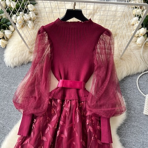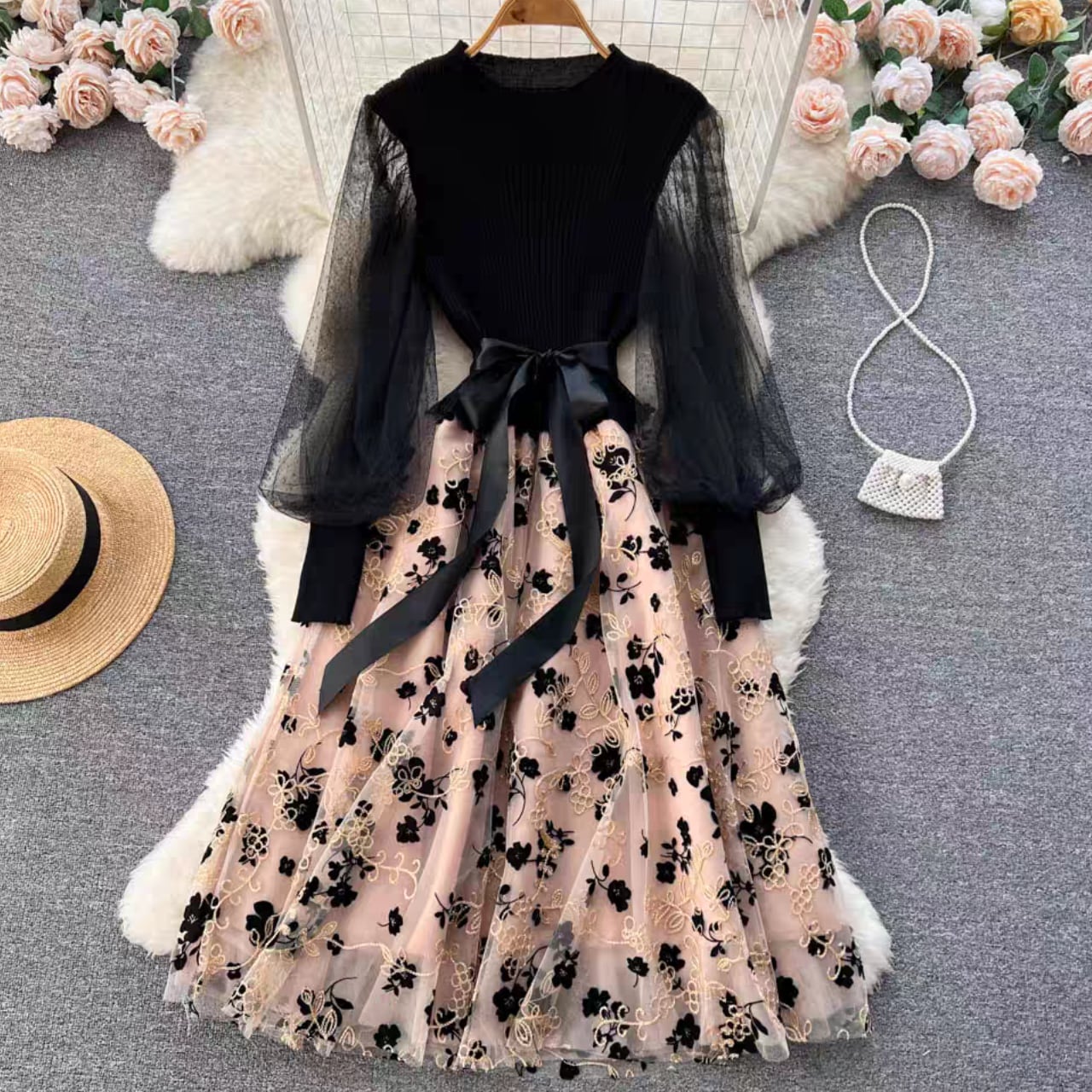 繊細な透け感の袖と、刺繍が映えるフレアシルエットが印象的なエレガントワンピースです。