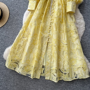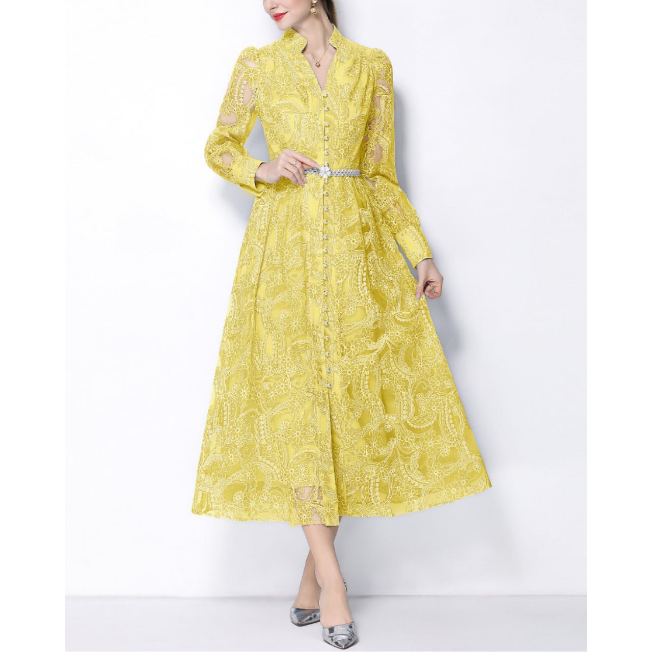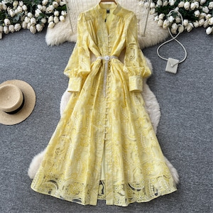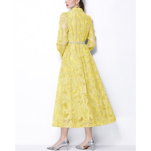 繊細なレースを贅沢に重ねたデザインが、装いに気品を添えるロングワンピースです。