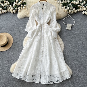 ノーブルレースロングワンピース 3color L2118