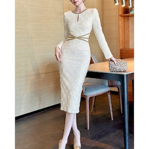 ウエストを美しく引き締めるデザインが、女性らしい曲線を際立たせ上品な色気を演出します。