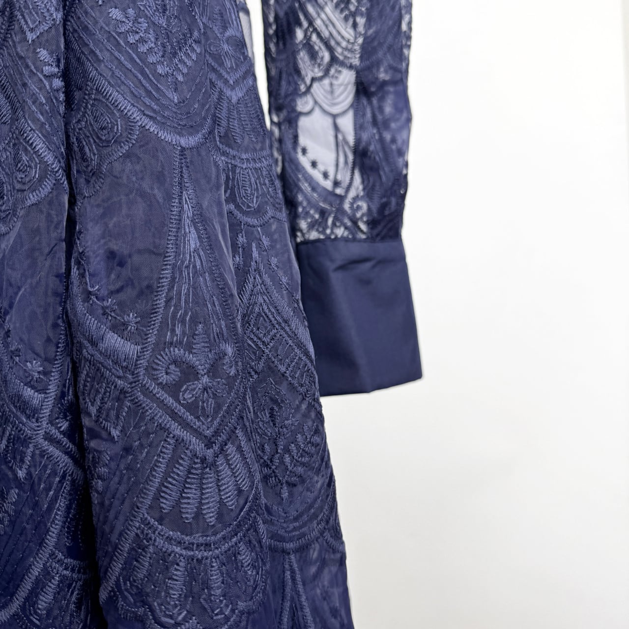 繊細なレース素材を贅沢に使用し、凛とした上品さと華やかさを兼ね備えたエレガントなワンピースです。