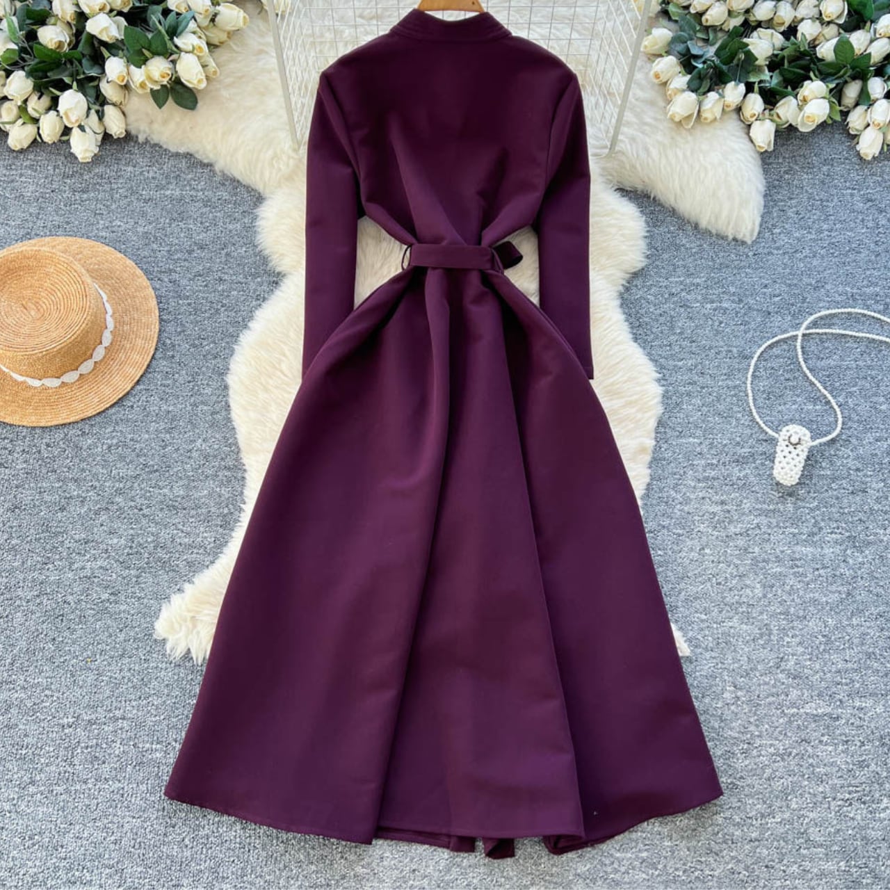 ウエストベルトで自然にメリハリが生まれ、スタイルアップと上品さを同時に叶えてくれます。
