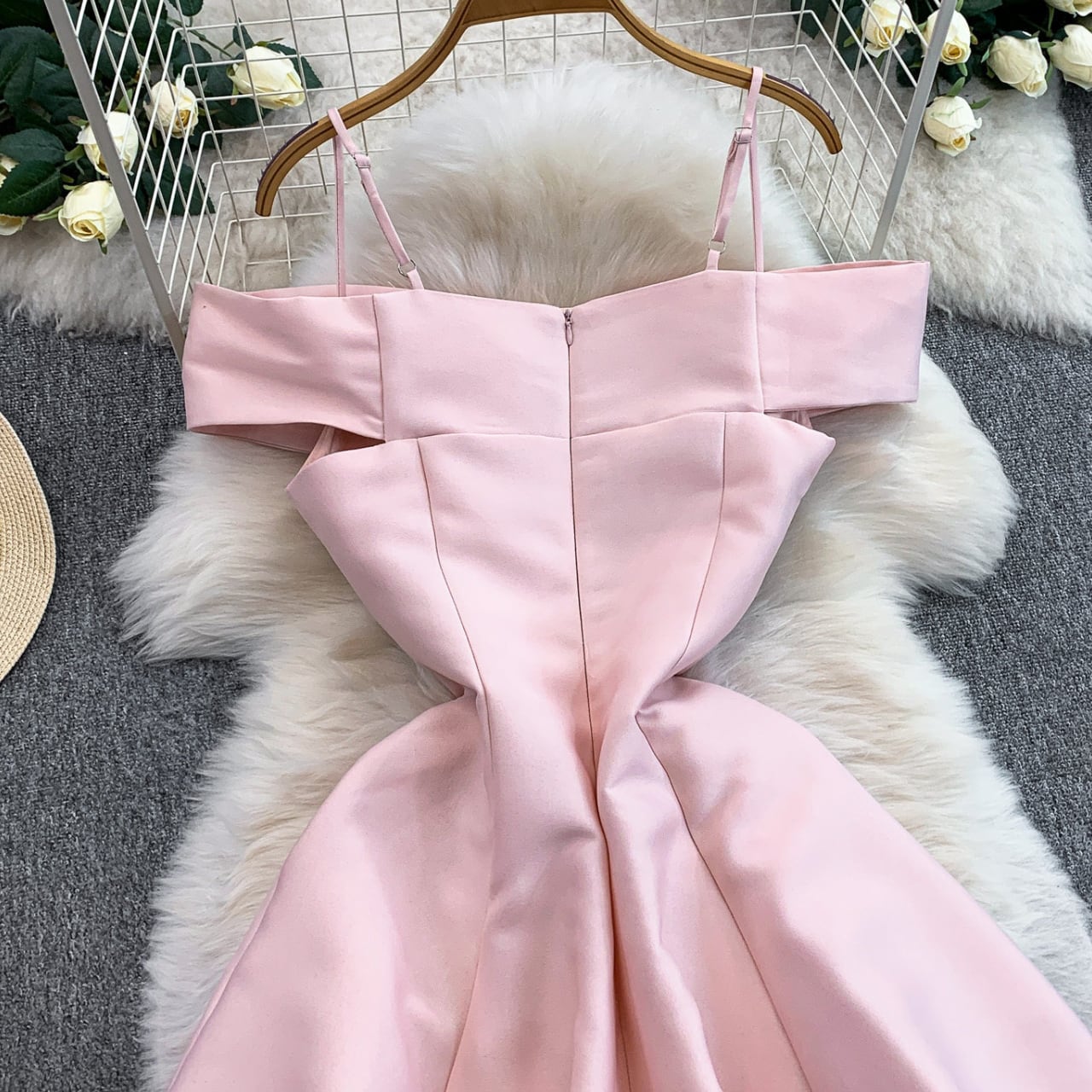 リボンオフショルフレアワンピース 3color L2138