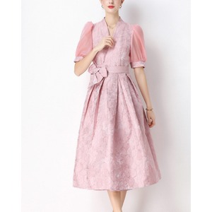 ウエストのリボンで自然なくびれを作り、縦ラインを強調したシルエットがスタイルアップを叶えます。