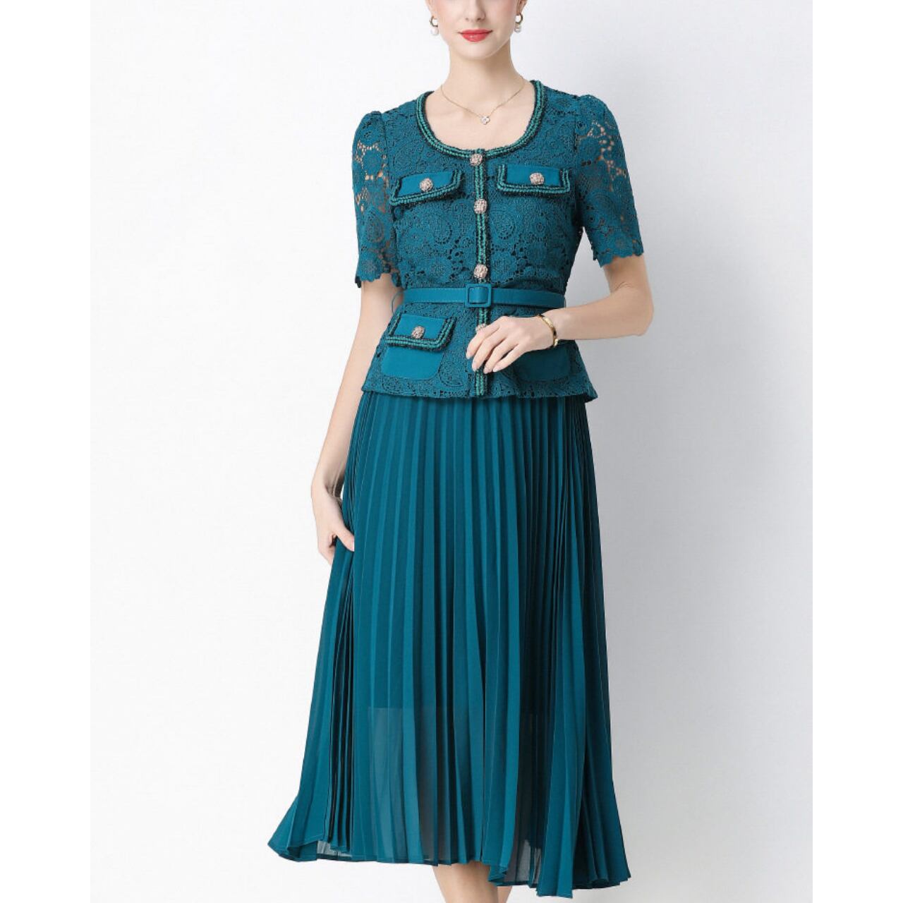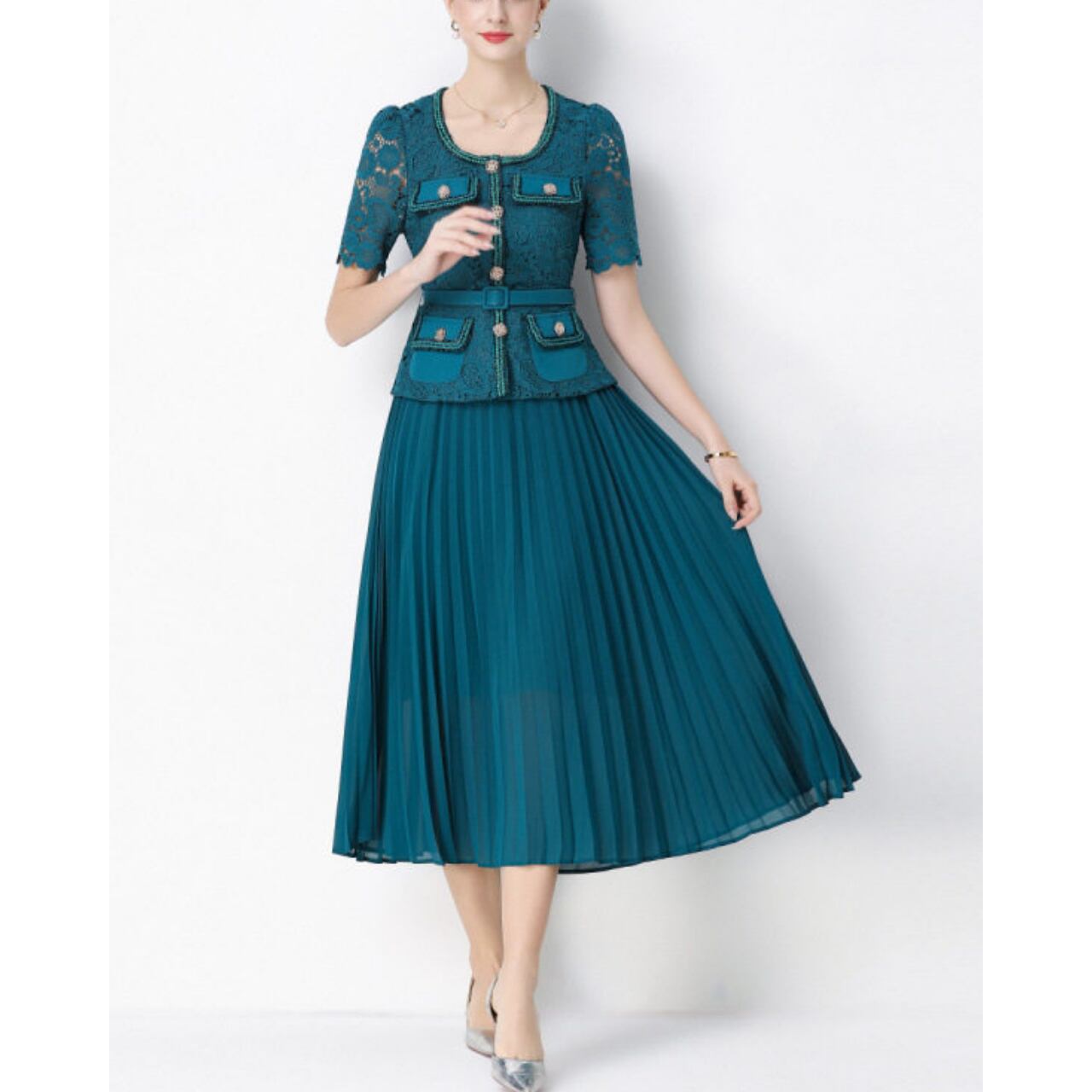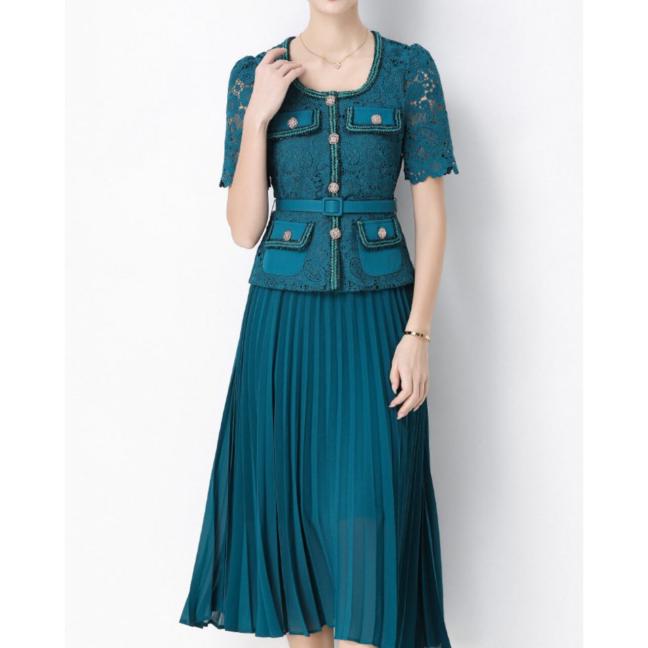 レースプリーツワンピース L2144