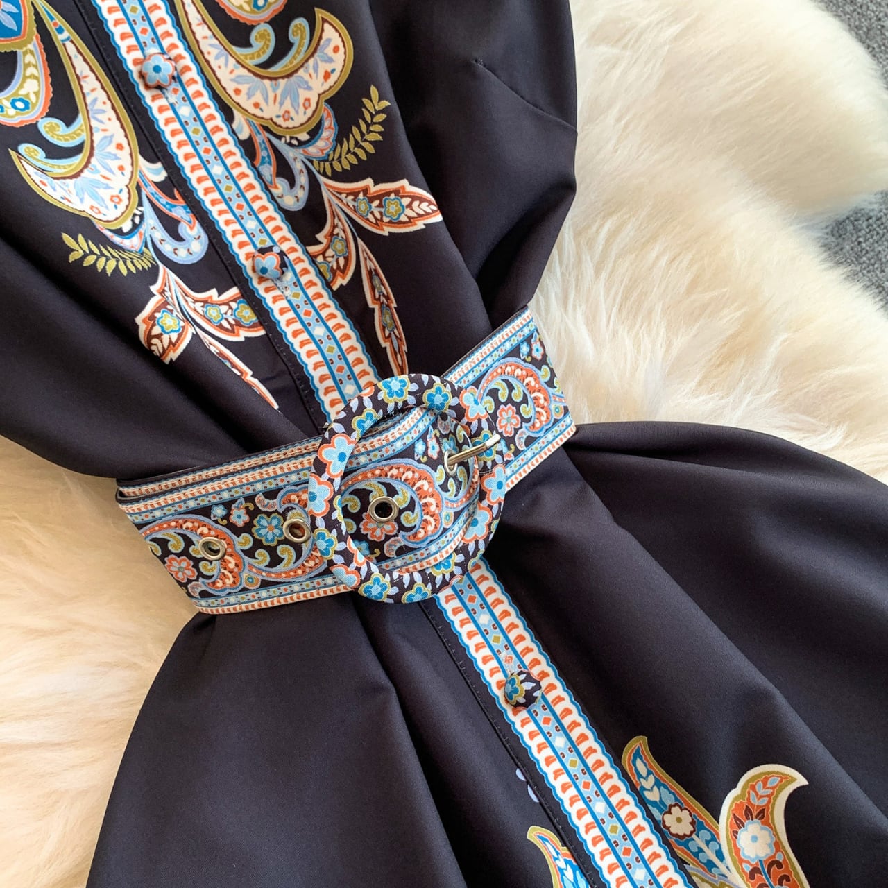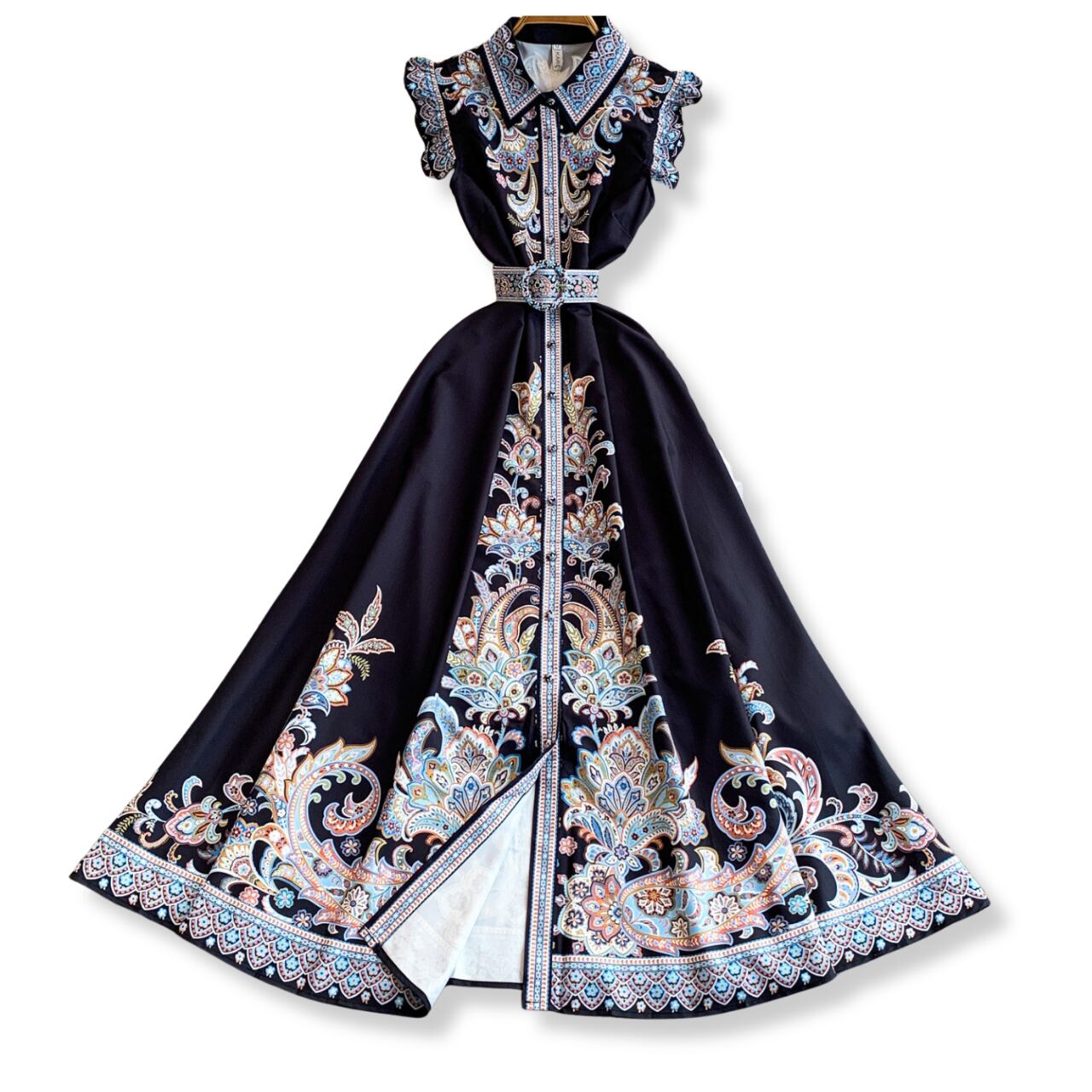 ウエストマークとたっぷり広がるフレアシルエットで、自然にメリハリのある美しいラインを演出します。
