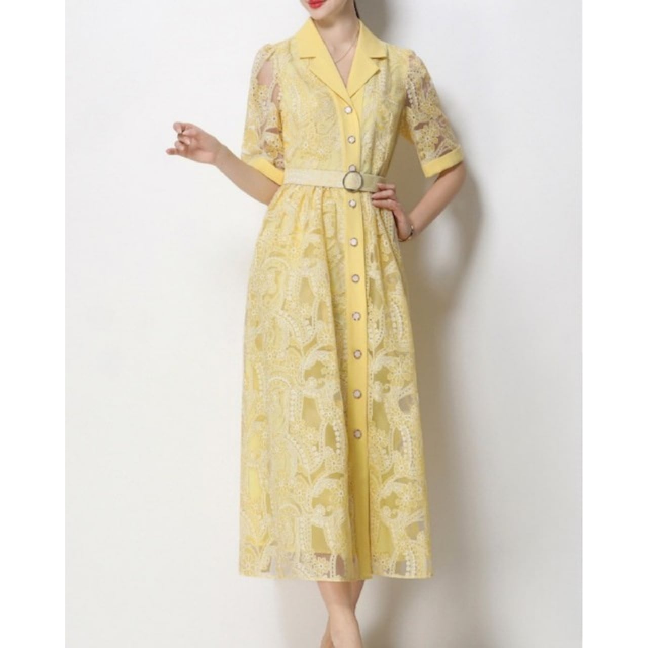 全3色 / 総レースベルトデザインシャツワンピース L2195