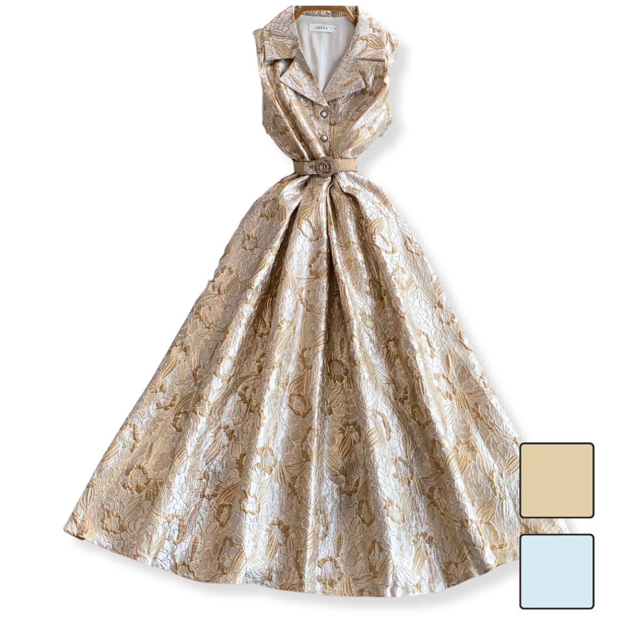 テーラードカラーレースフレアワンピース 2color L2197