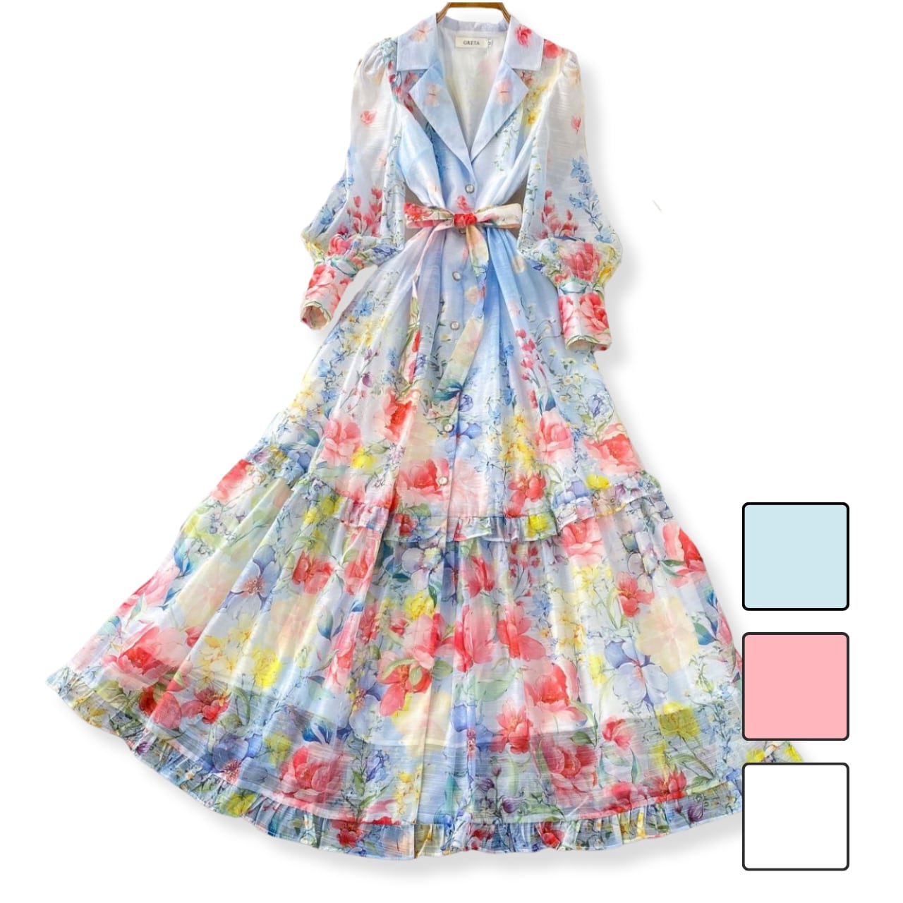 テーラードカラー花柄フレアワンピース 3color L2201