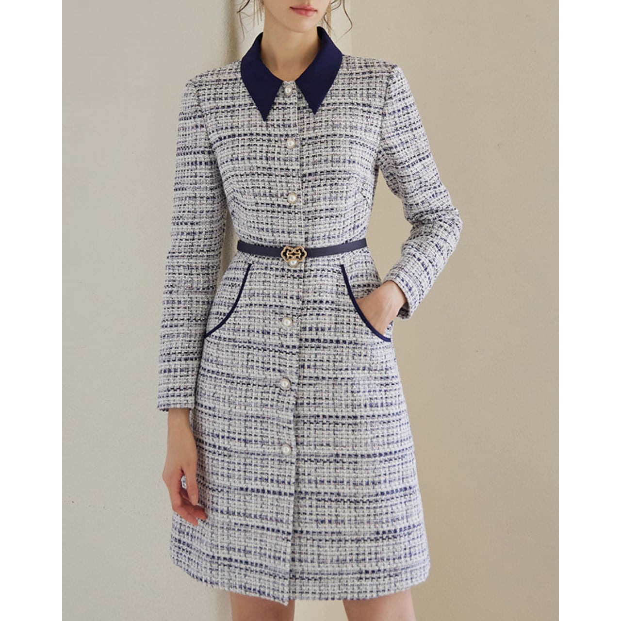 クラシカルな襟デザインとフロントボタンが、品格ある佇まいを演出する一着。
