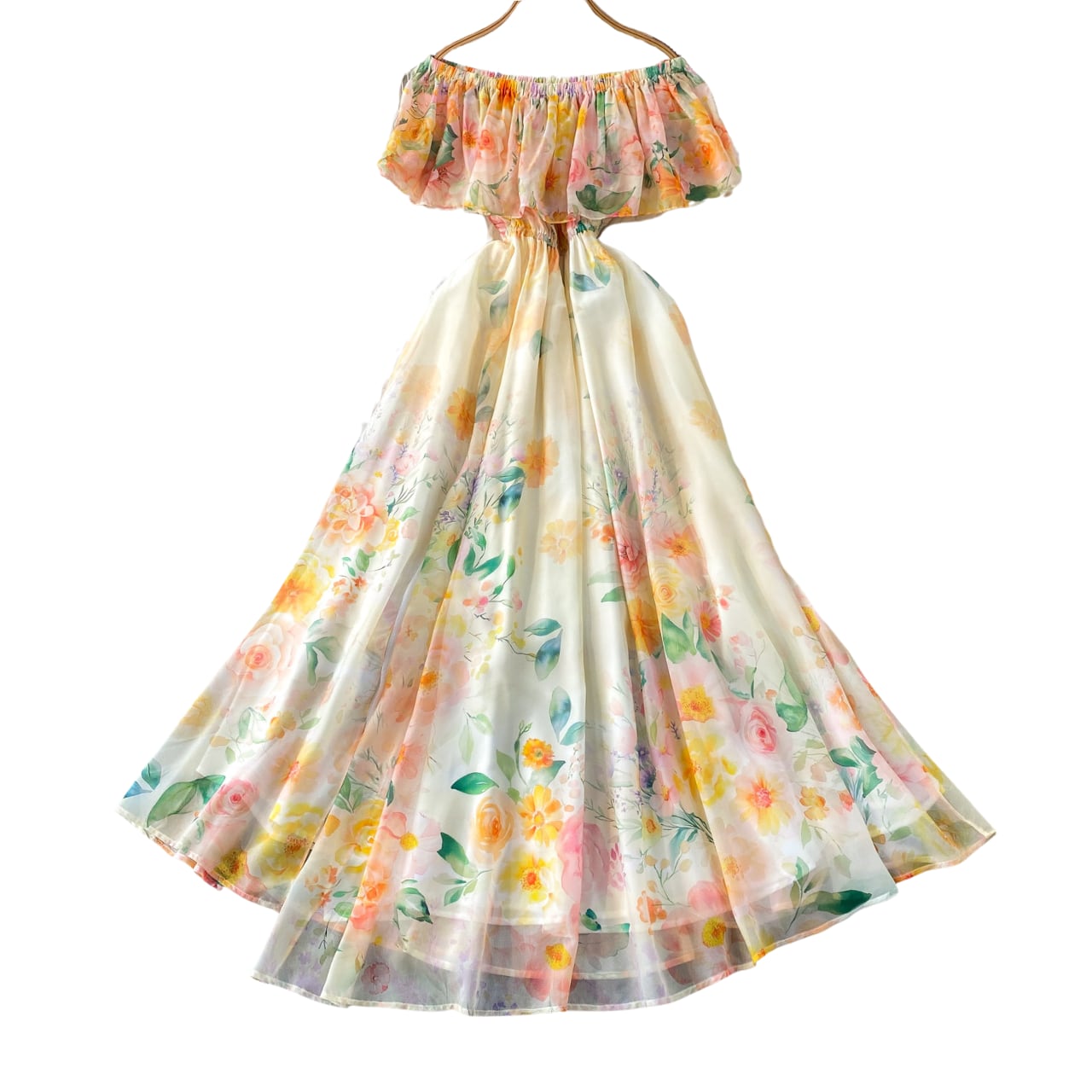 全2色 / フラワーウエストギャザーオフショルダーワンピース L2208