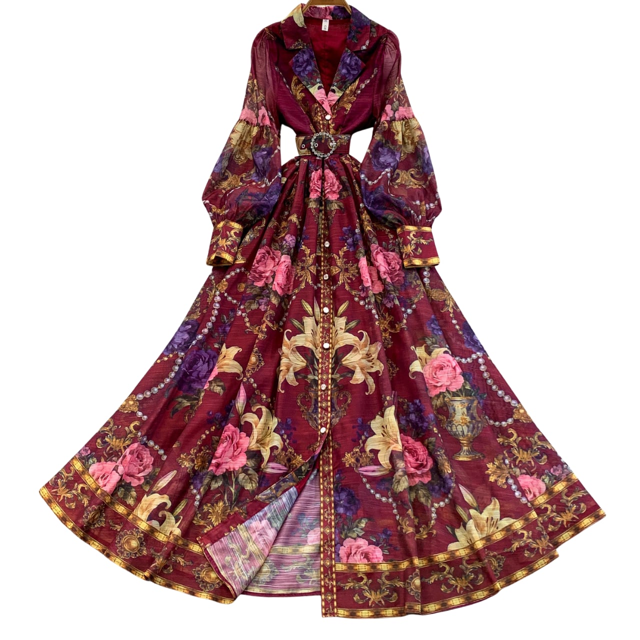 特別なお出かけやフォーマルシーンにも映える、存在感のあるロングワンピースです。