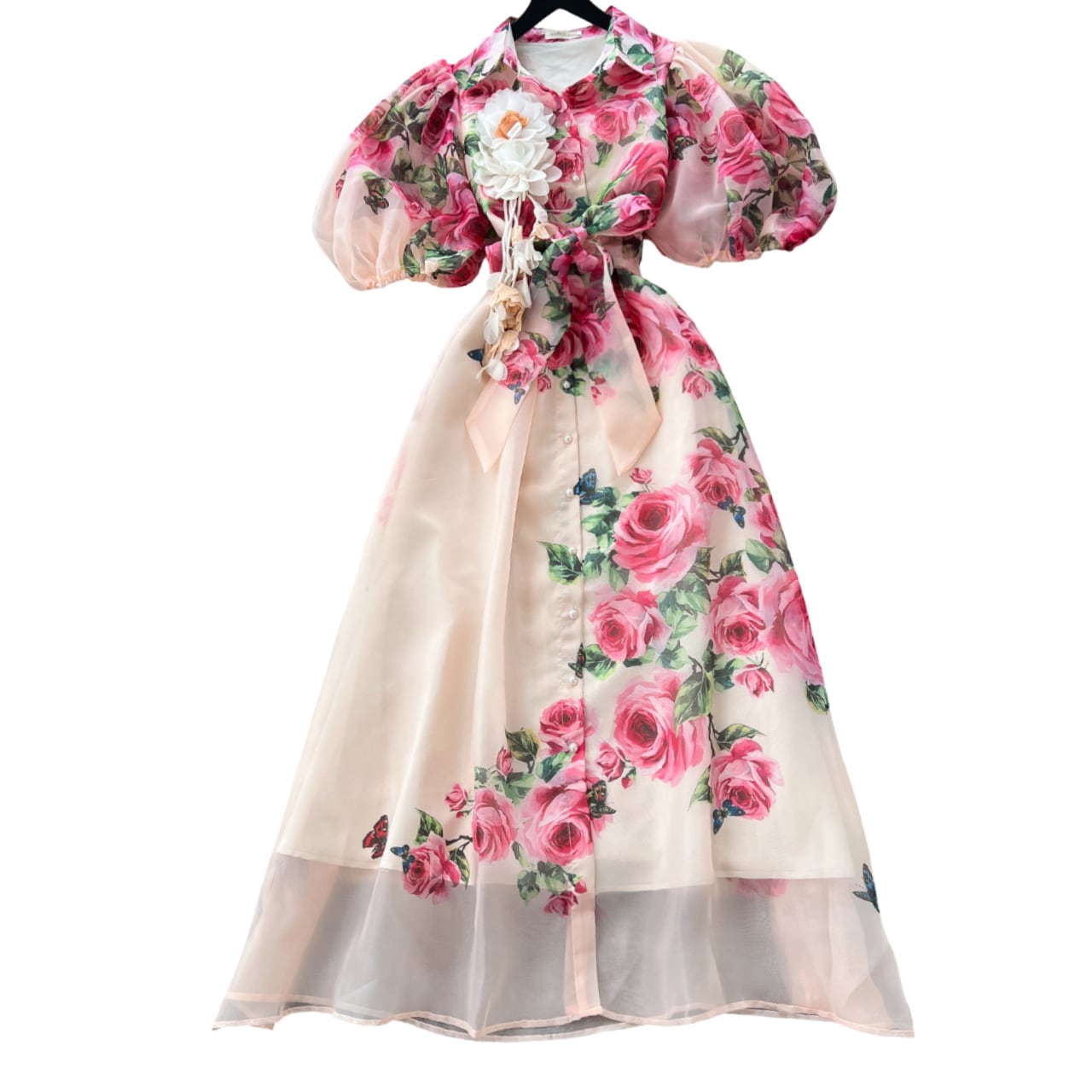 華やかなフラワーが優雅に広がり、纏った瞬間に視線を惹きつけるシャツワンピースです。