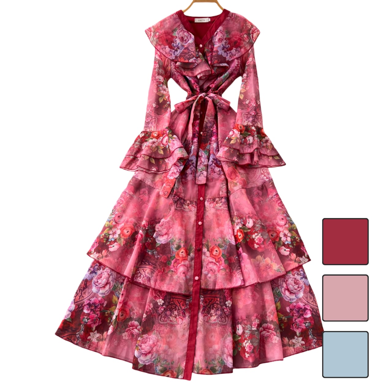 段差をつけたティアードラインが歩くたびにふんわりと揺れ、特別な日にも映える上品で華やかな装いを完成させます。