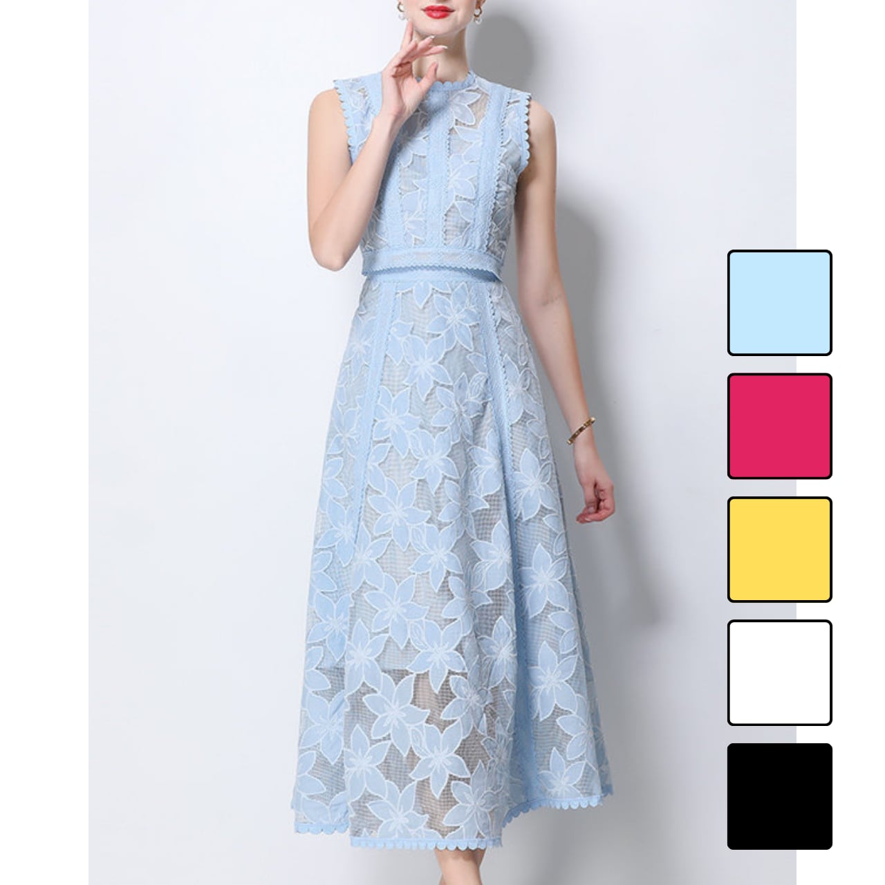 フラワー刺繍レースノースリーブワンピース 6color L2261
