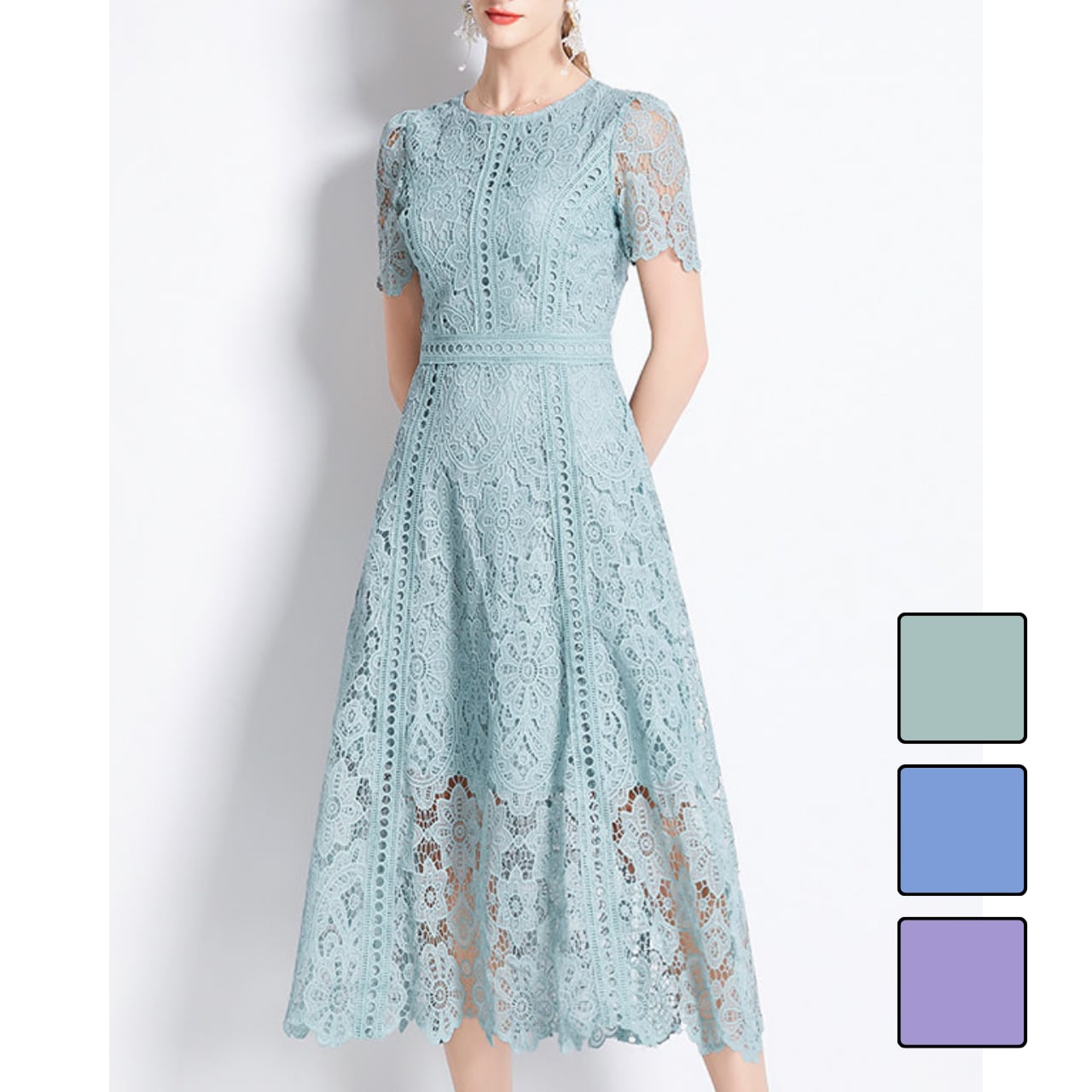 コードレースフラワーハーフスリーブワンピース 3color L2262