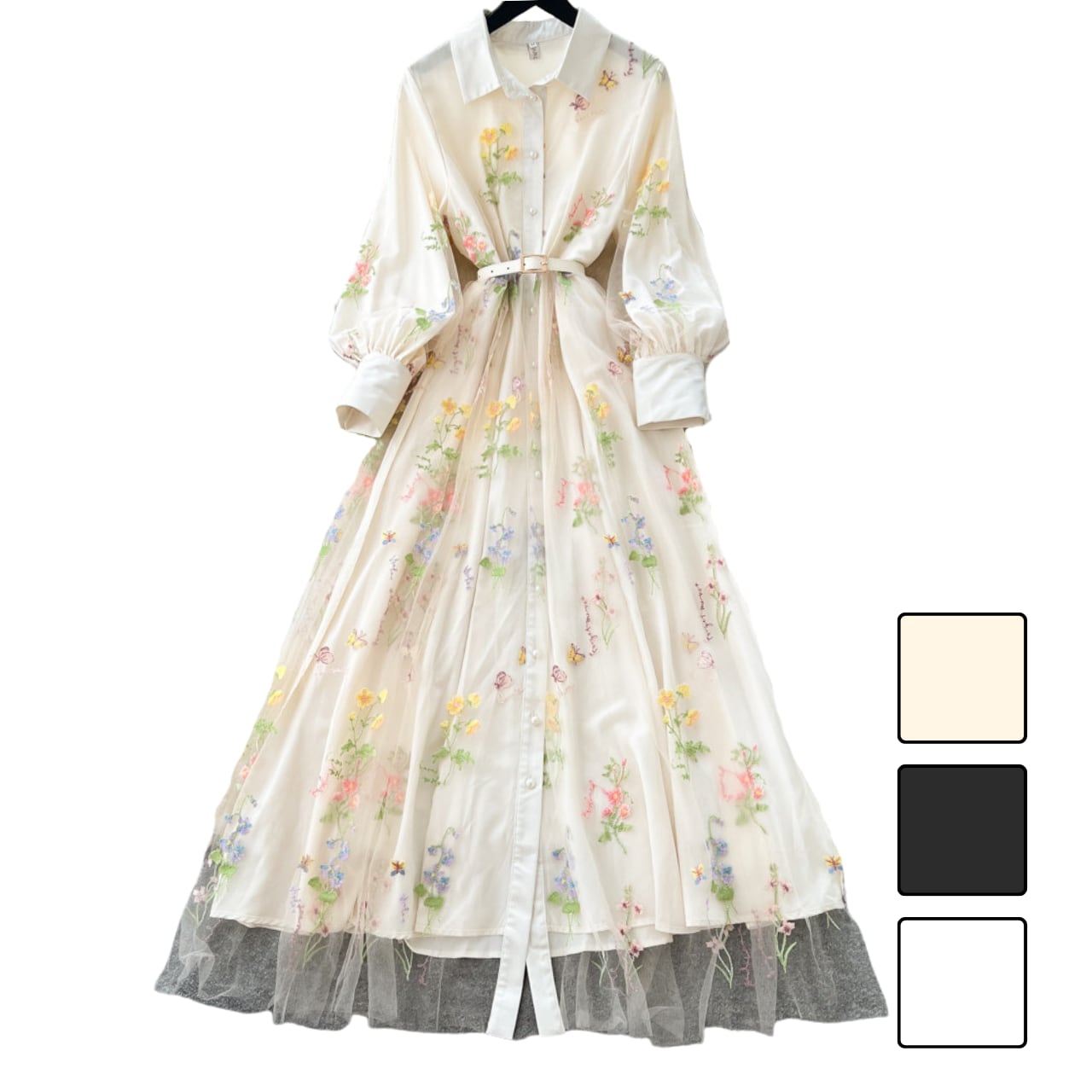 フラワー刺繍シアーベルトデザインワンピース 3color L2272