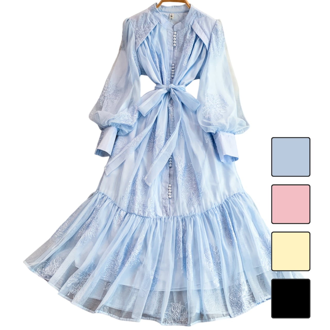 フラワー刺繍シアーリボンデザインワンピース 4color L2280