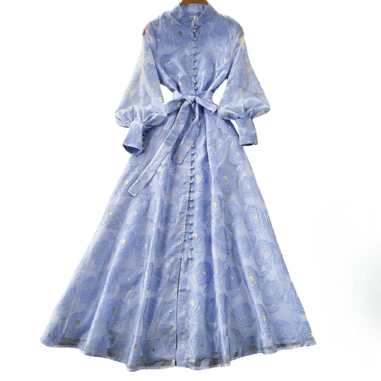 立体感のあるローズ柄が全体にあしらわれた、華やかで女性らしいシアーワンピースです。