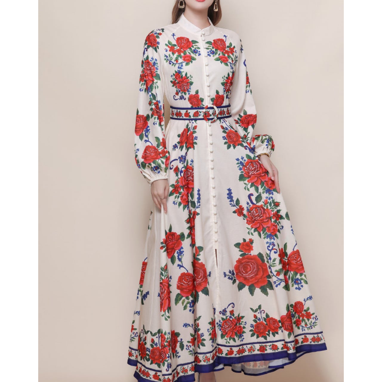 華やかなフラワーモチーフがクラシカルに映える、気品漂う一着。