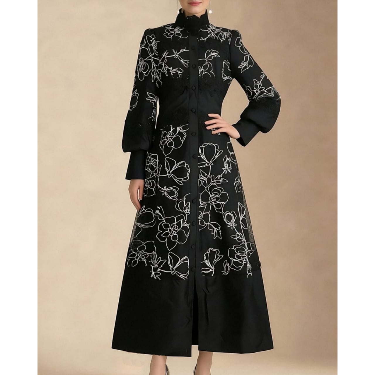 ふんわり広がるフレアシルエットが優雅な動きを生み、女性らしさを引き立てます。