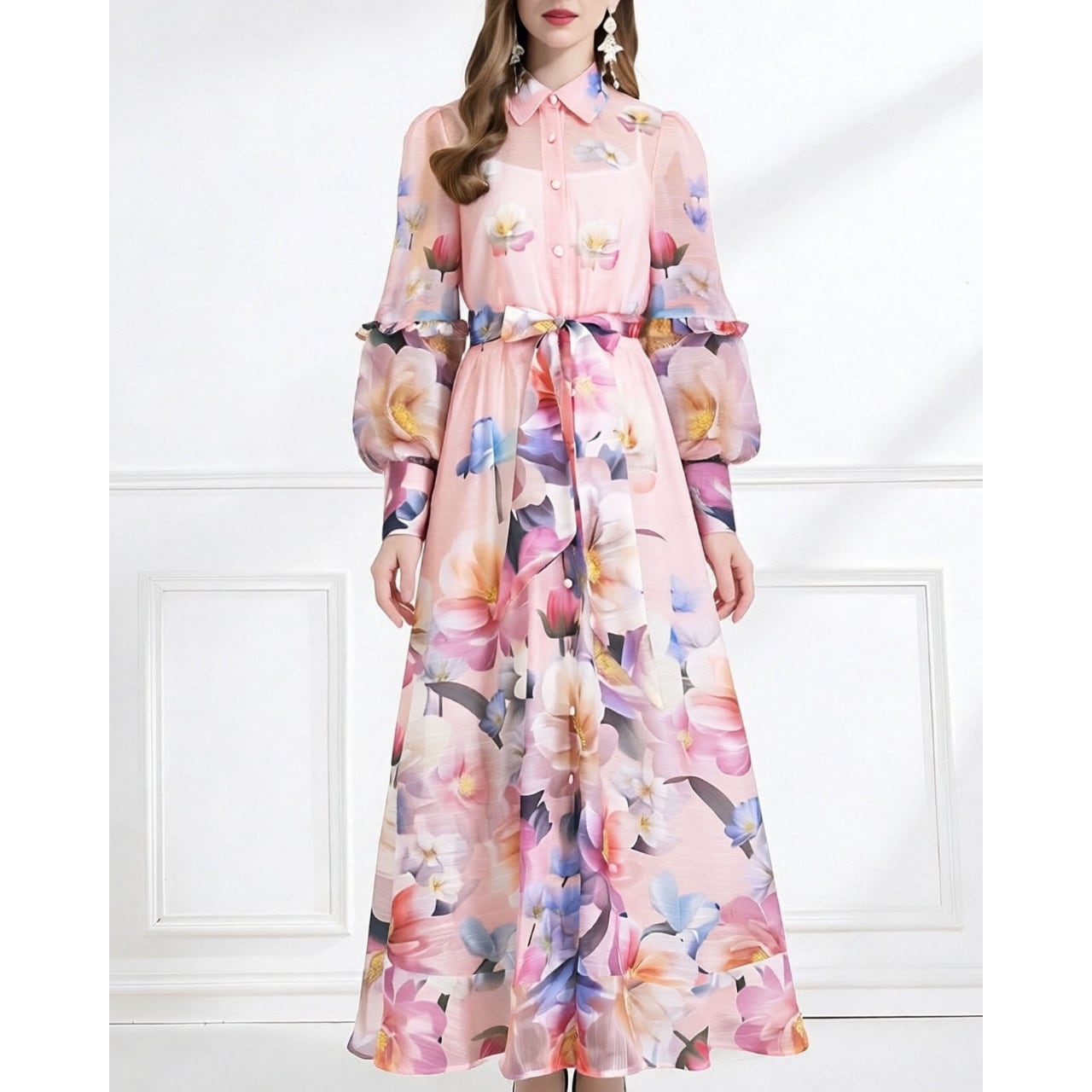 全2色 / フラワーシアーフレアリボンワンピース L2333