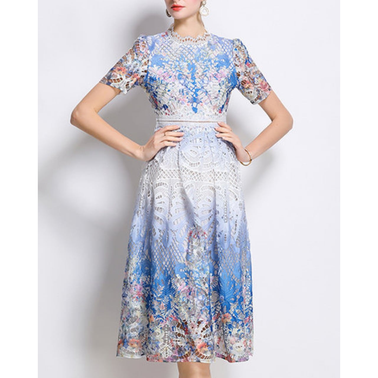 全2色 / フラワーモチーフレース切替フレアワンピース L2335