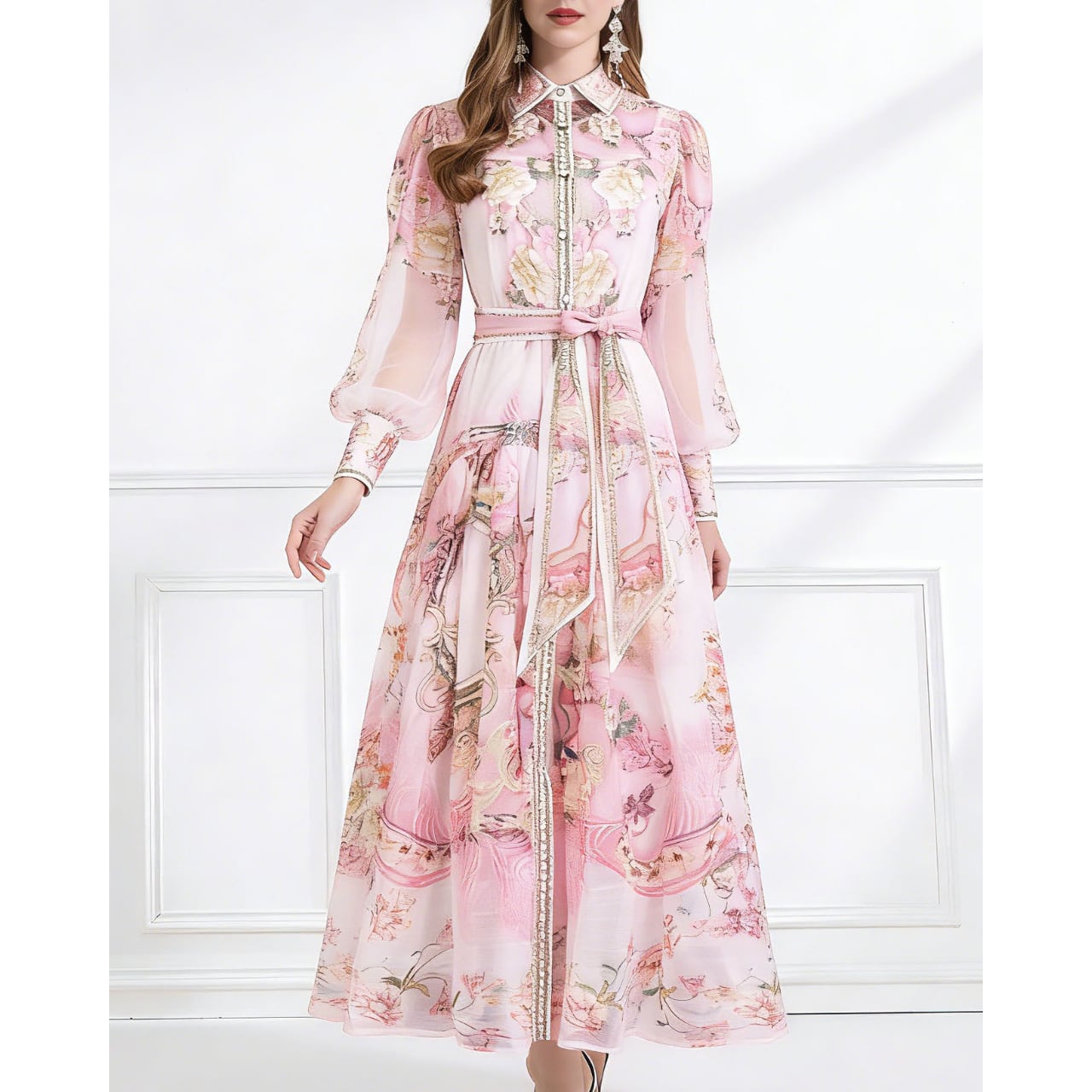 ウエストのリボンデザインが自然なメリハリを生み、美しいシルエットを引き立てます。